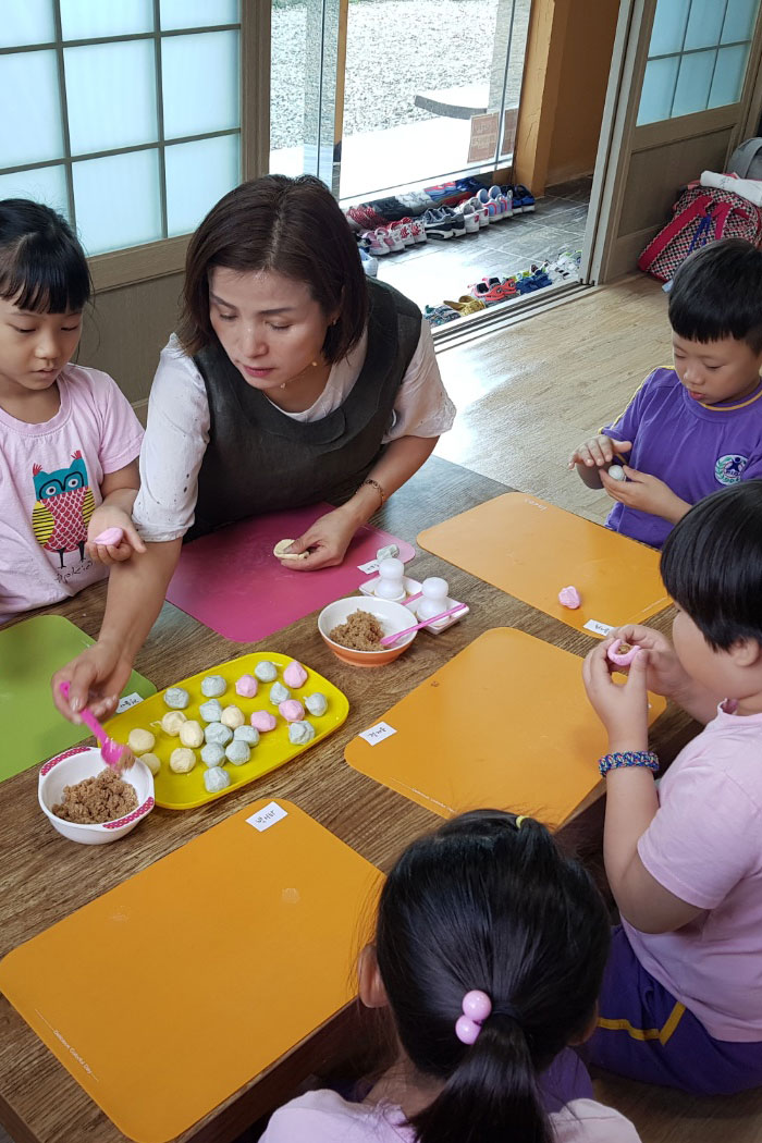 몸으로 익히는 오감놀이, 떡 만들기와 전통 놀이체험! 자연을 그대로 느낄 수 있는 넓은 잔디 밭에서 뛰고, 걷고, 만들고 관찰하며 아이들의 창의성은 쑥쑥 올라갑니다.