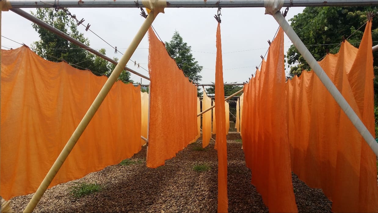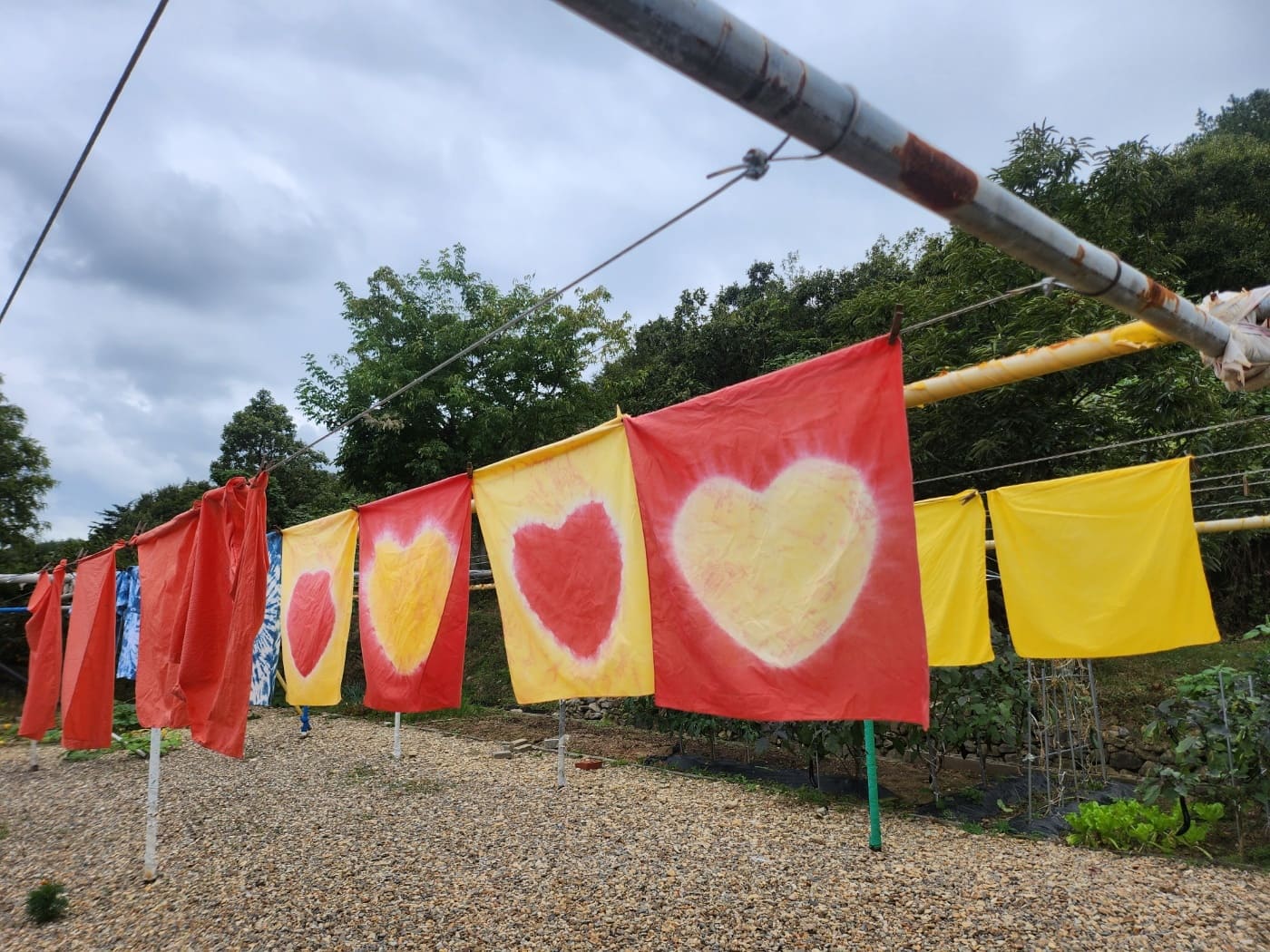이론수업 > 홀치기 > 홀치기 완료 > 염료착색 > 건조&완성